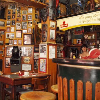 Der ehemalige Wartesaal für Passagiere der "Schellfischbahn" ist heute die älteste Seemannskneipe in Hamburg-Altona. Früher trafen sich hier Seeleute aus aller Herren Länder. Einige brachten Souvenirs gegen ein paar Bier gratis mit. So entstand über Jahre die urige und gemütliche Ausstattung des Lokals.